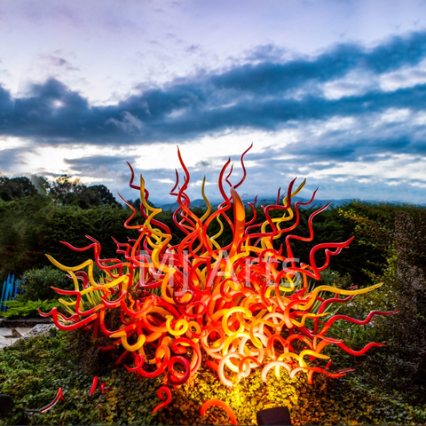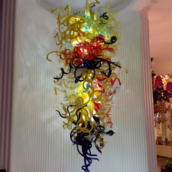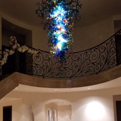Candelabro de cristal de arte soplado a mano estilo Chihuly moderno y grande personalizado, Hotel Villa, instalación de techo de hierro, iluminación para habitación funcional