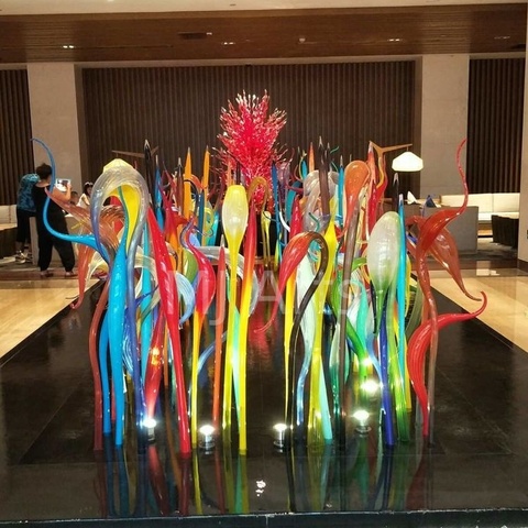 Árbol alto hecho a medida, decoración de Hotel grande, iluminación, escultura de suelo, cultura de Esmalte de colores, vidrio de Murano, vidrio soplado a mano MJ