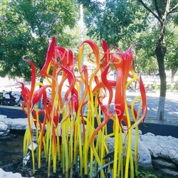 Cañas modernas hechas a medida, decoración de jardín al aire libre, escultura, lanzas de Color rojo, cristal de Murano, técnica de soplado de grúa de Corona Roja